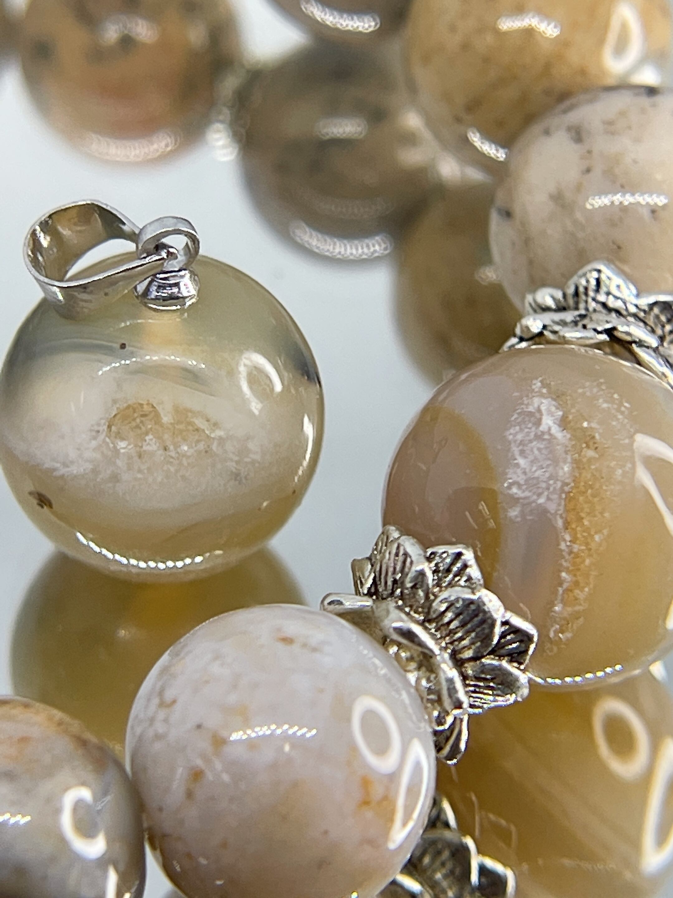 中国のモンゴル地区の砂漠で採れるアゲートです。他の天然石にはないユニークな模様やカラフルな色がとても魅力的です。
