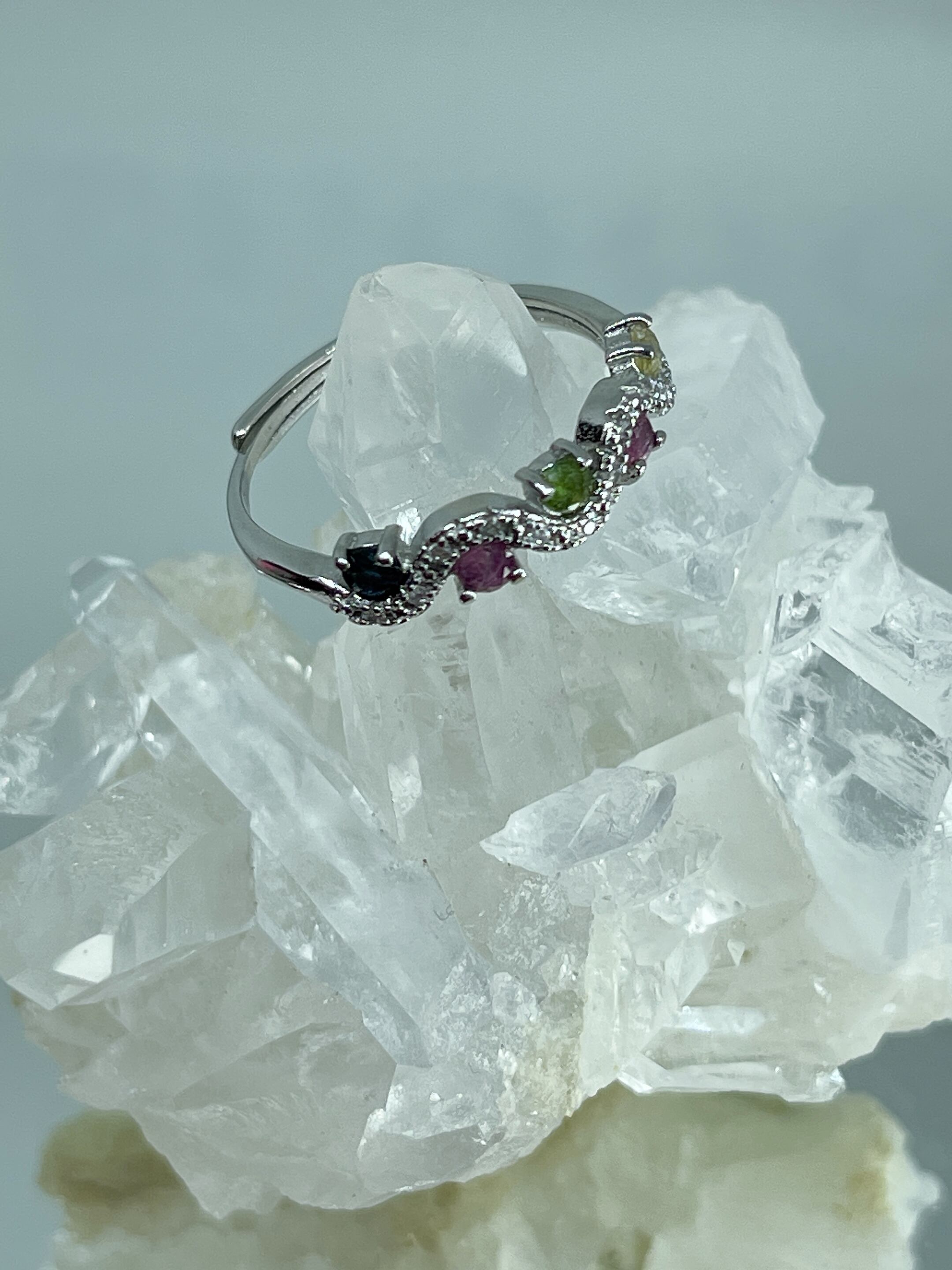 直感・予感、閃きの石✨☆マルチカラートルマリン☆真鍮フリーサイズリング