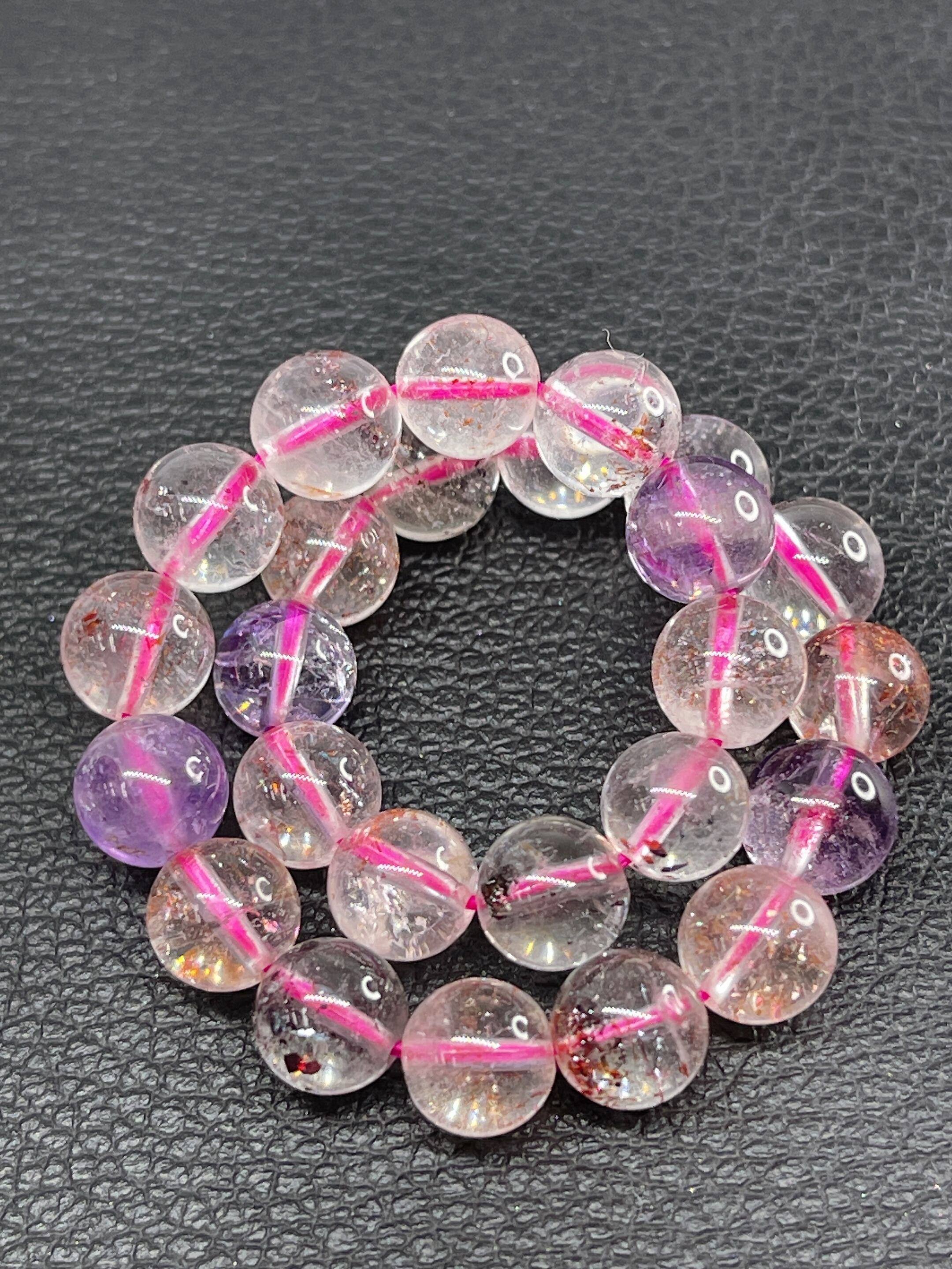 クリスタル、アメジスト、カコクセナイト、ゲーサイト、レピドクロサイト、スモーキークォーツ、ルチルの7種類です。加工後に鉱物が入っていなくても、原石に全て含まれていたなら同等の力を持って持つと言われています。持つ人を選びません。