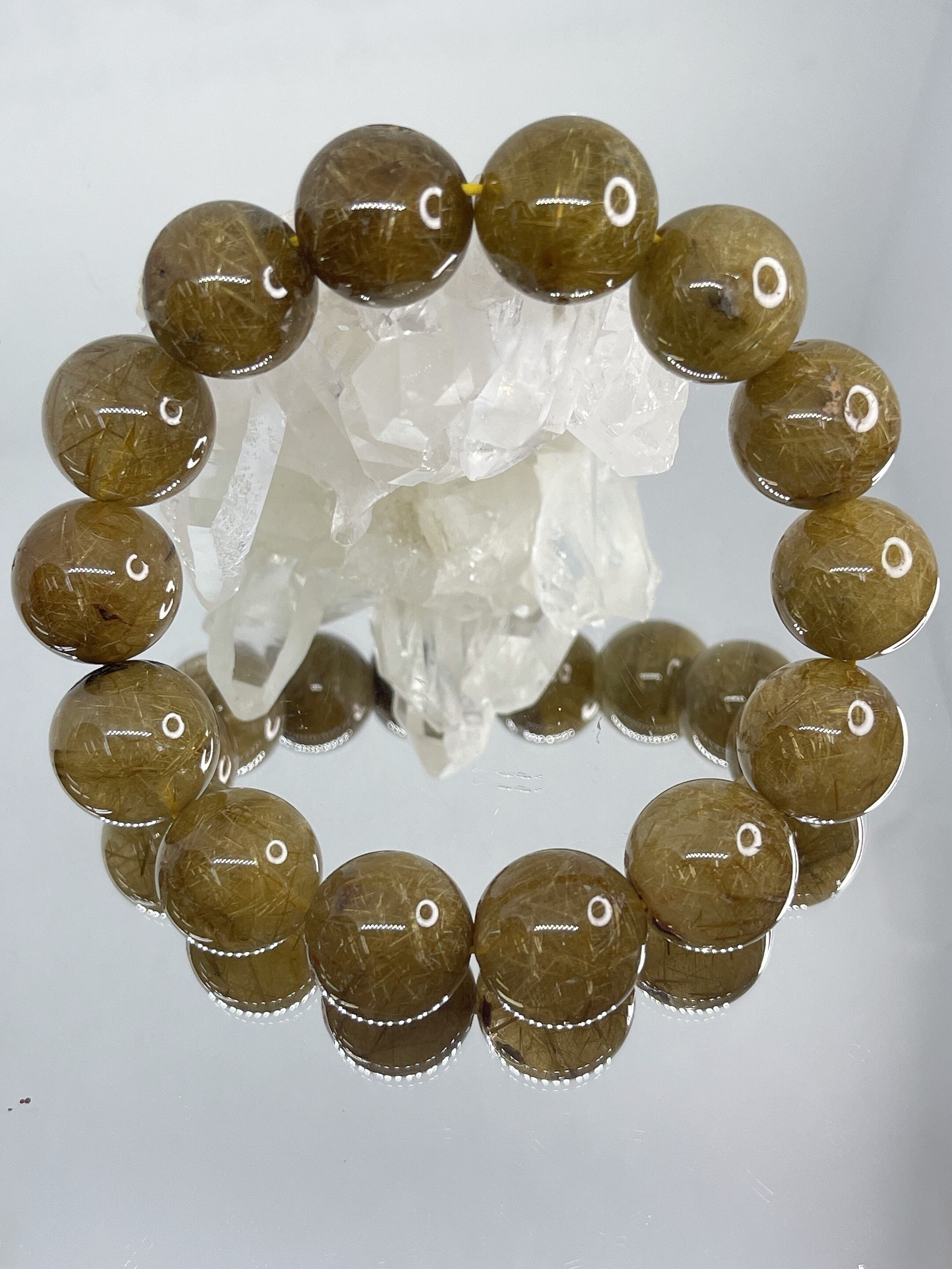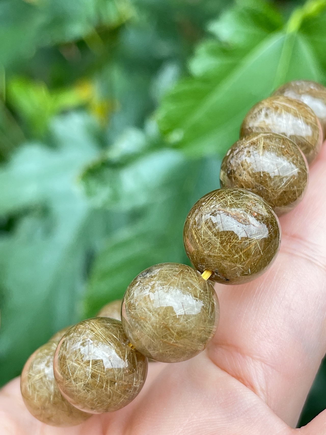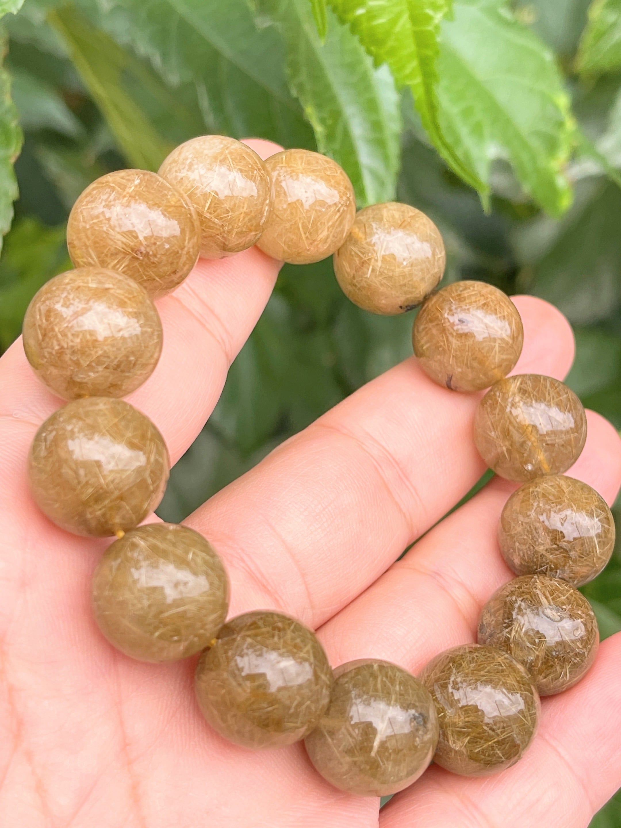 鑑別書付❣️針状のアンテナで幸運をキャッチ✨☆ゴールドルチルクォーツ ☆大玉ブレス