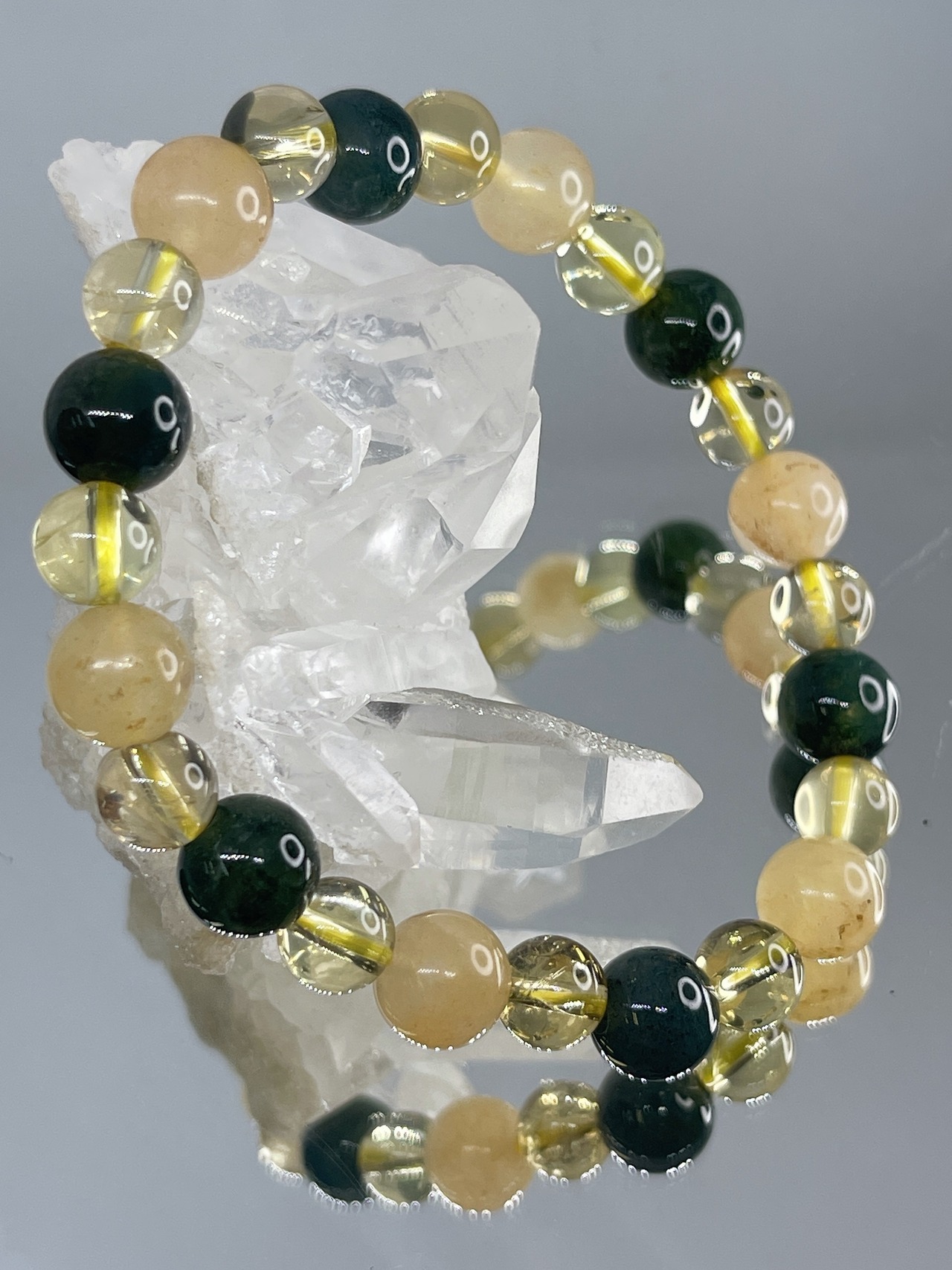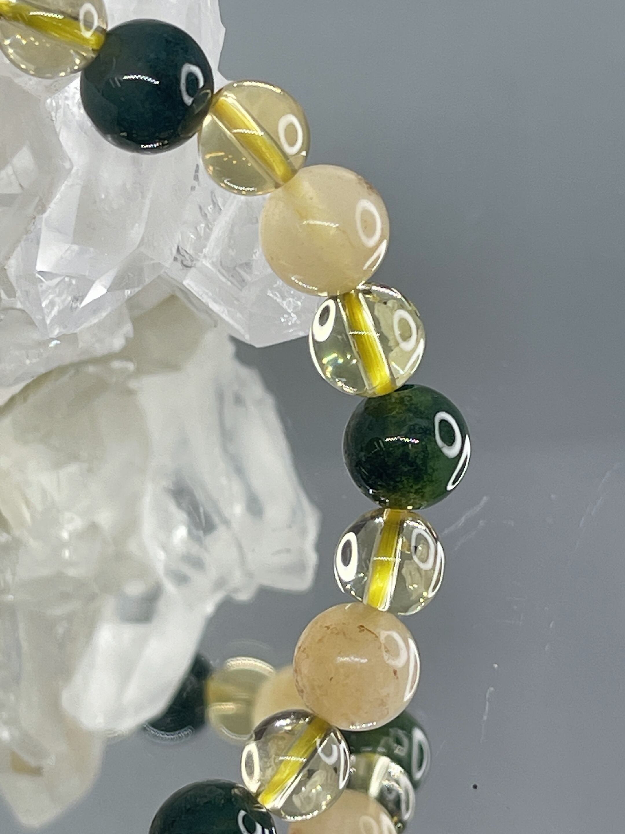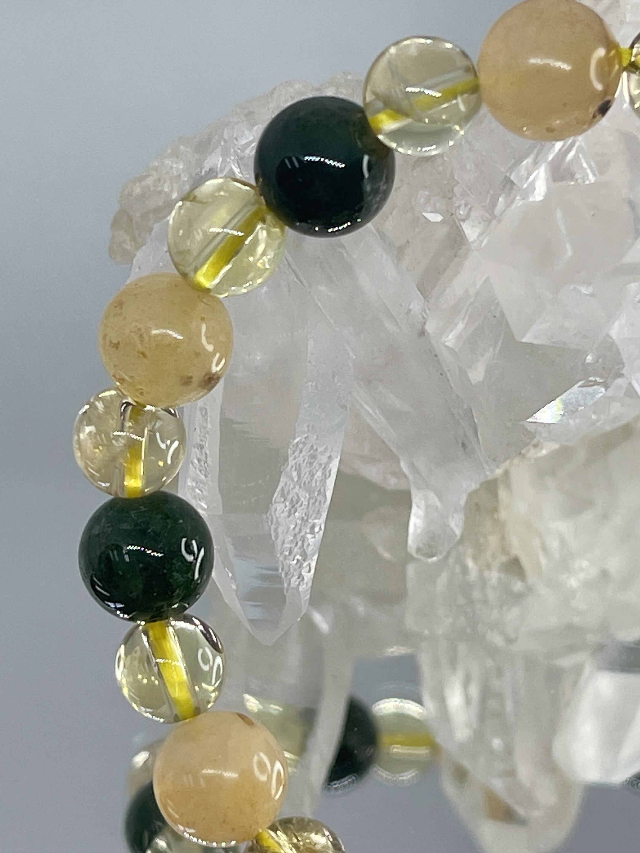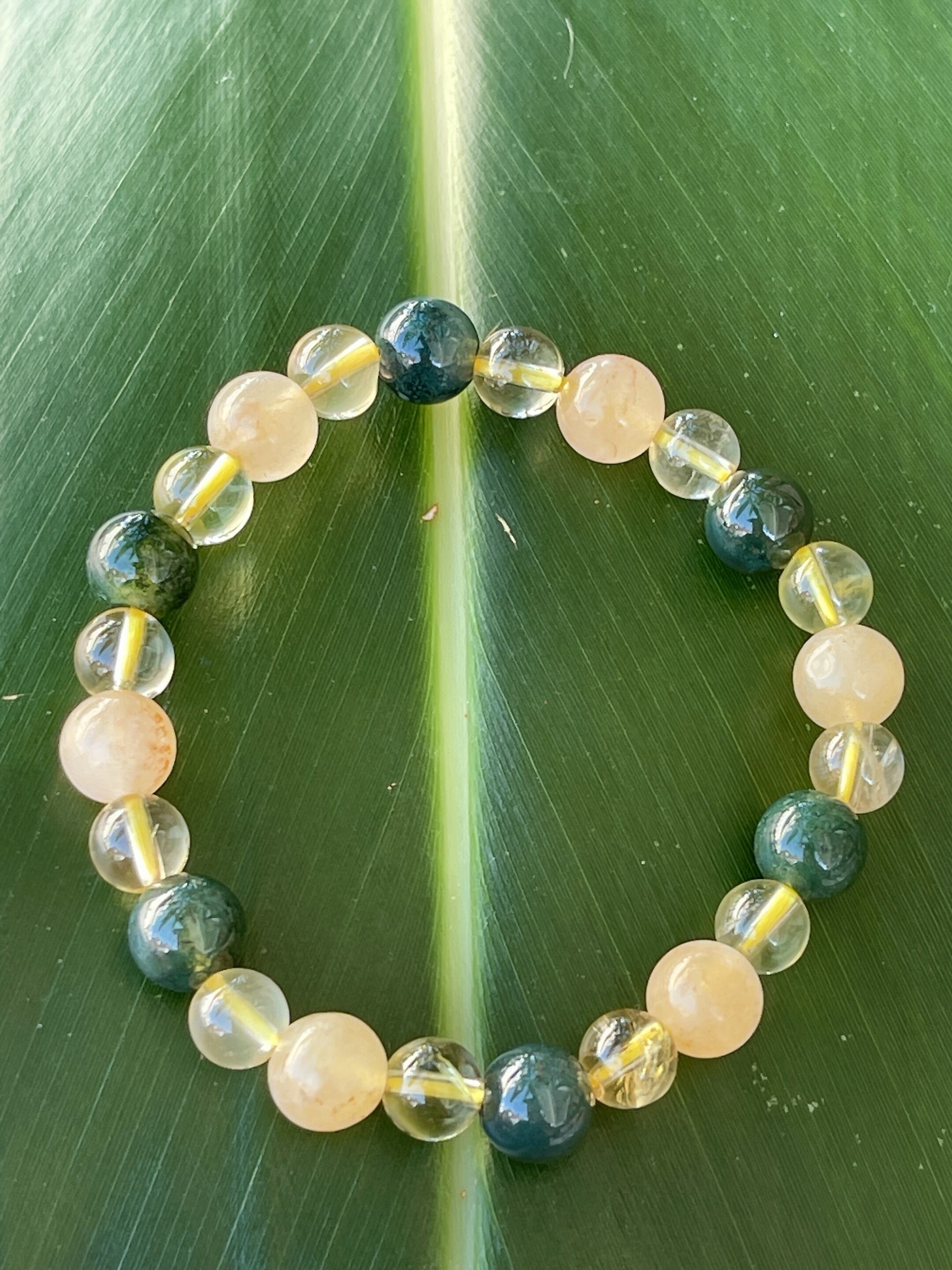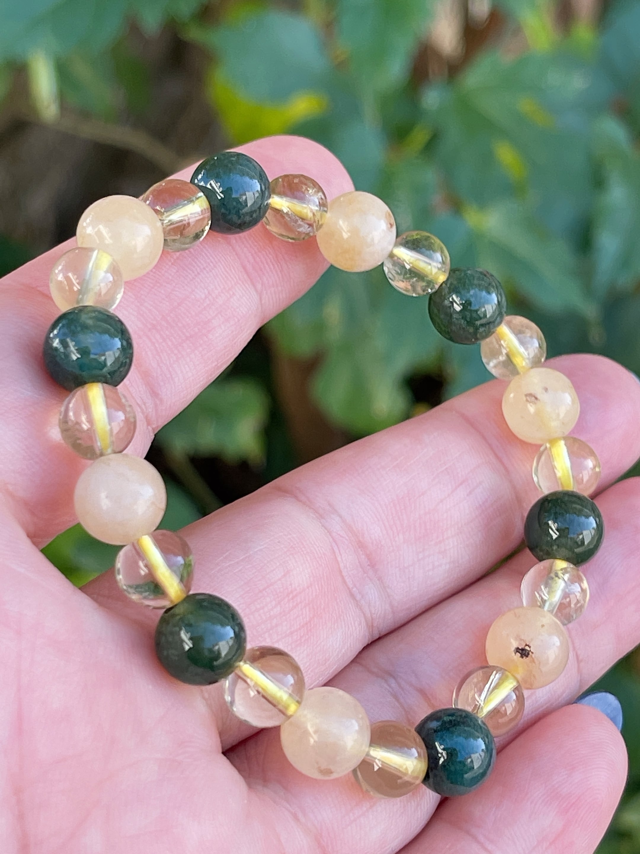 深い癒し・喜びをもたらす✨☆オレンジカルサイト・モスアゲート・シャンパンクォーツ☆ブレス