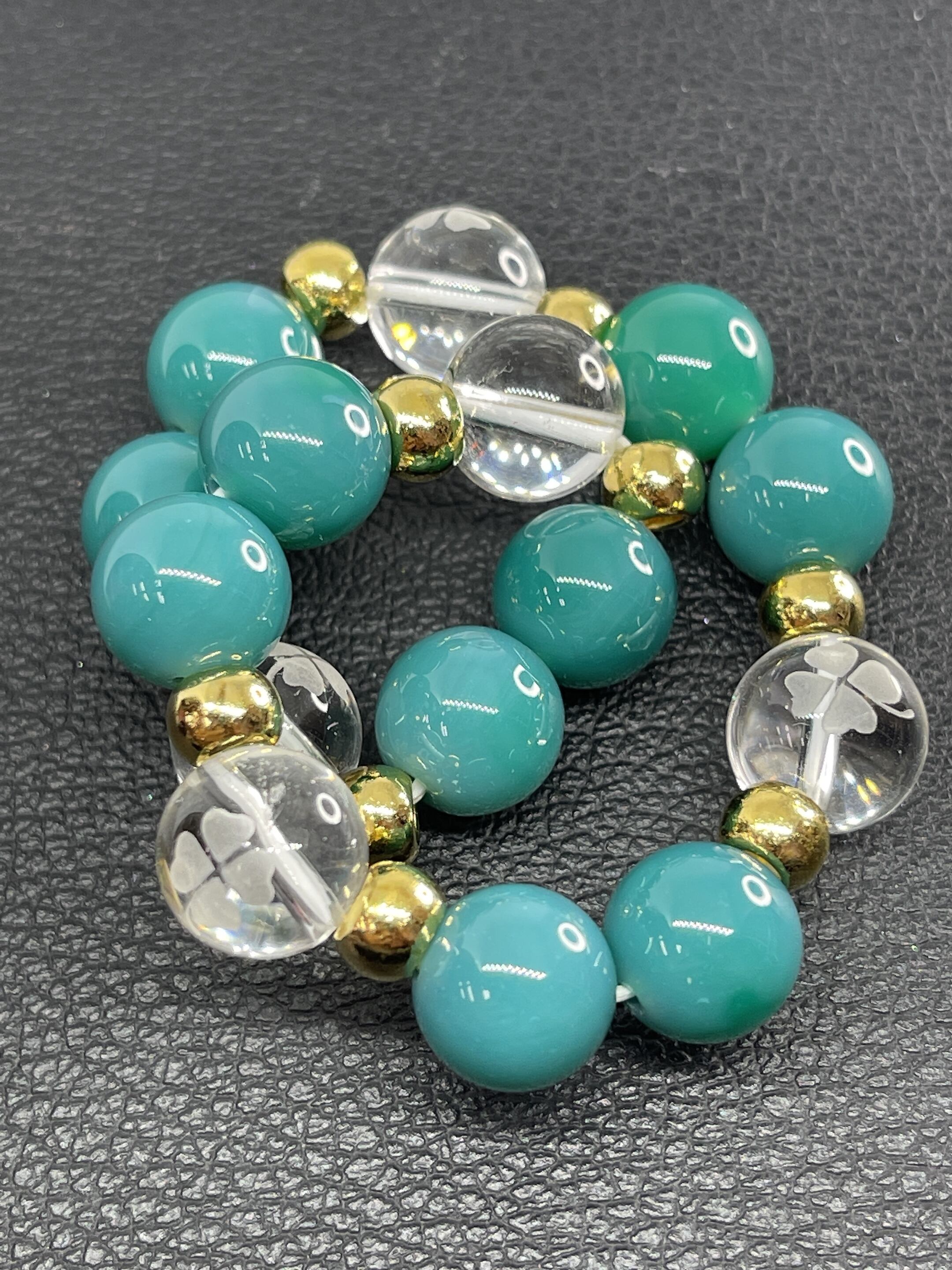絆を強める・才能開花✨☆グリーンアゲート・四つ葉水晶☆ブレスレット