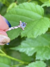 アフリカのタンザニアで発見された石。「タンザナイト(タンザニアの夜の意味)」という商業名です。本来はゾイサイトという鉱物で、美しい青紫のものをタンザナイトと呼んでいます。高価な宝石で、光のあたる角度によって紫色や青色に変化、微妙な発色で多色性を持ちます。