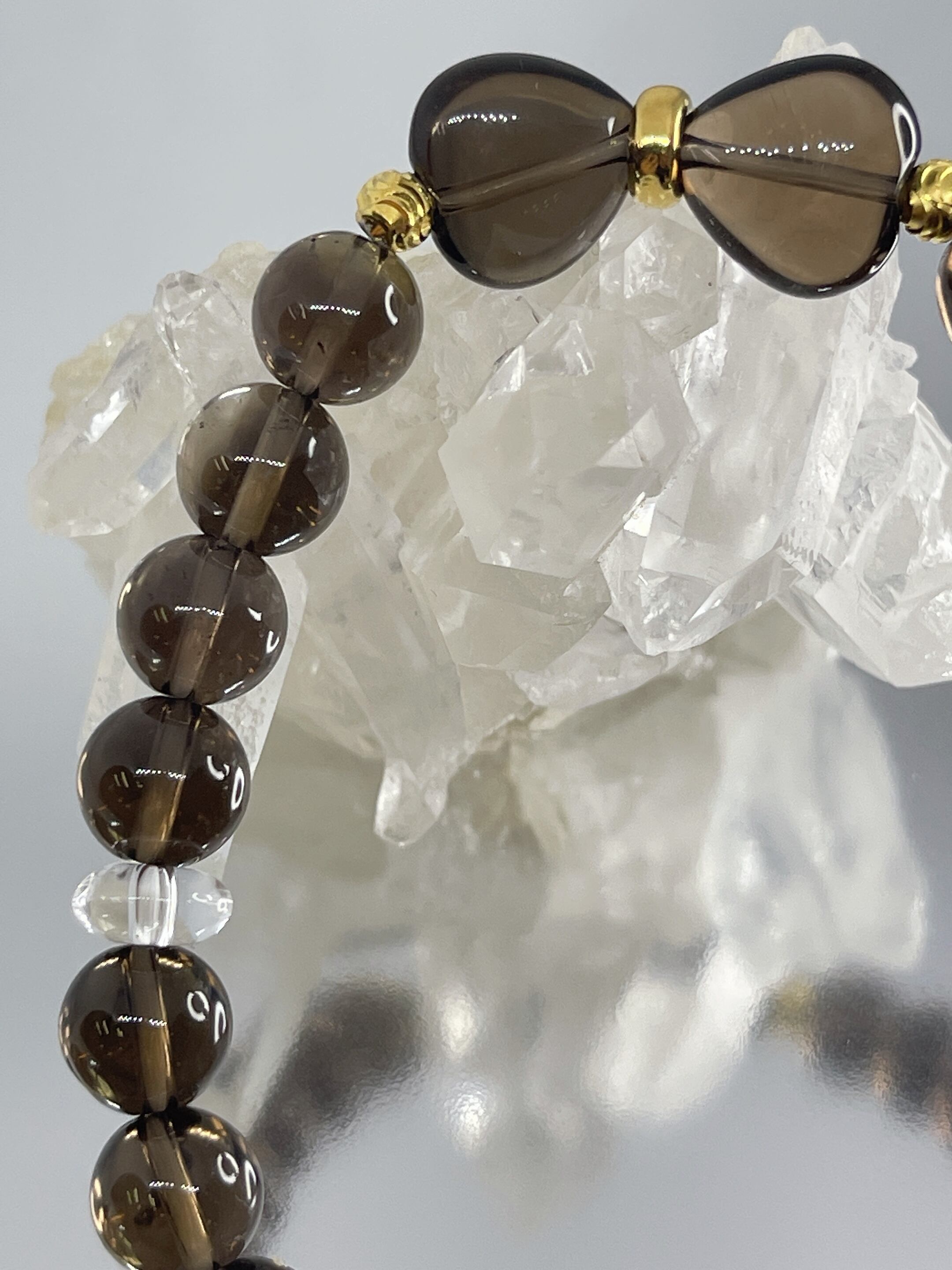煙を思わせる茶色がかった神秘的なクォーツです。透明度の良いものは希少。持ち主の心に安定感をもたらせます。生きることの実感、充実感を与えてくれます。精神安定作用に優れ、恐れやパニックを、取り除き安眠を与えてくれるでしょう。