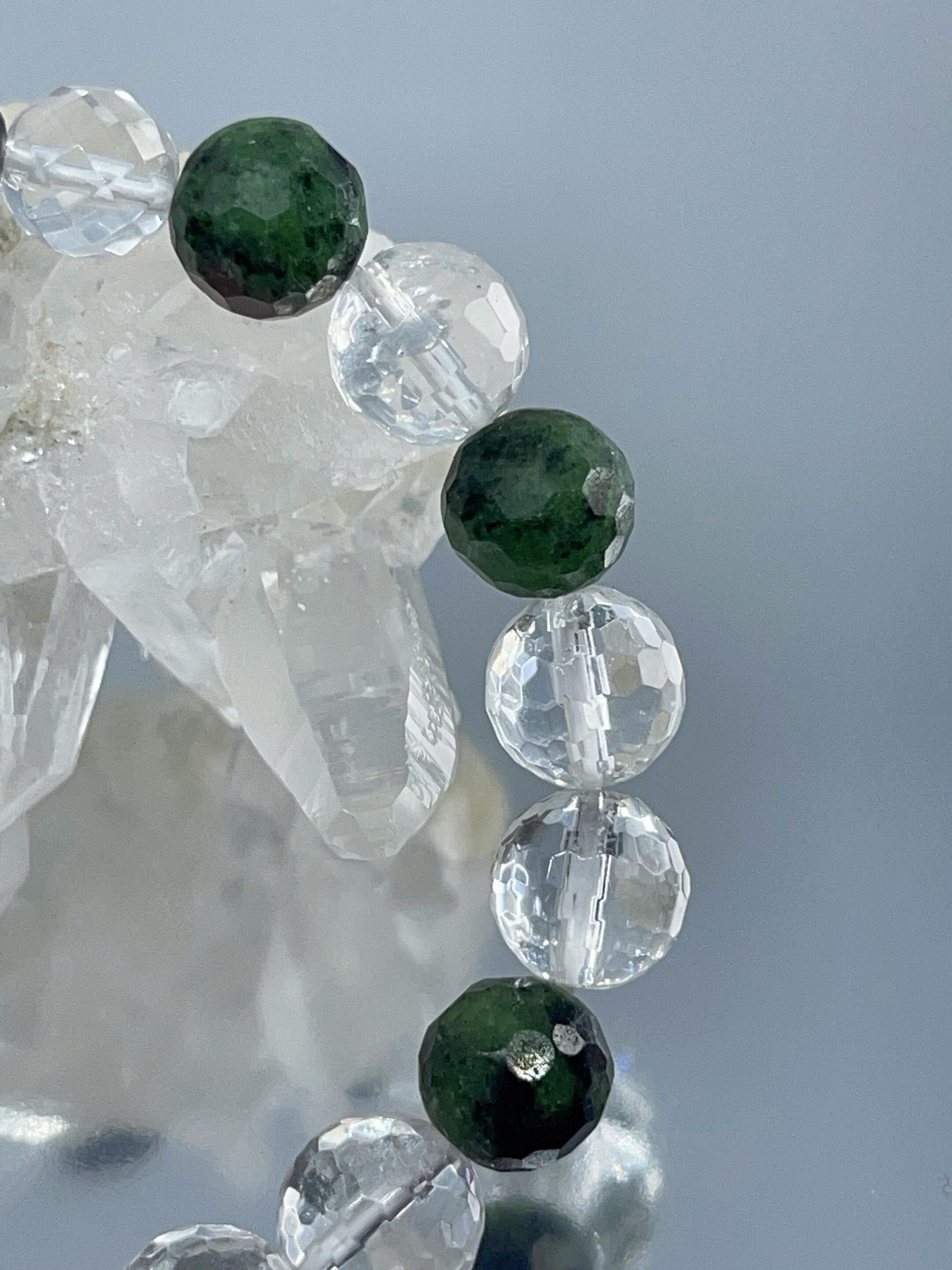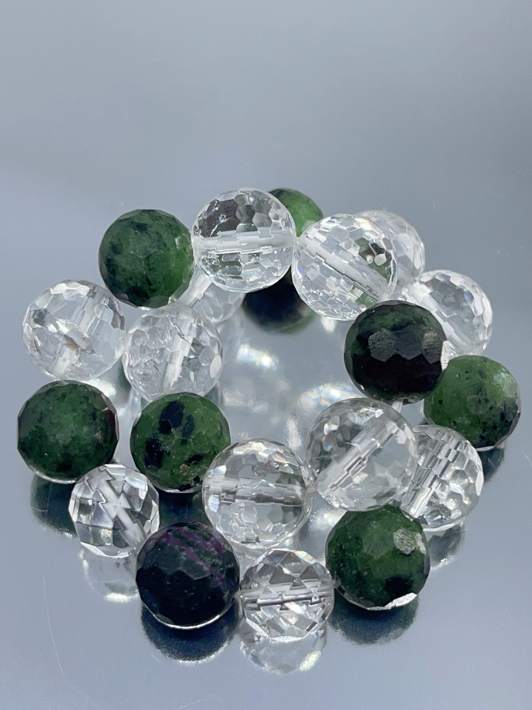 幸運・ヒーリング効果✨☆ゾイサイト・ミラーボールカット水晶☆ブレスレット