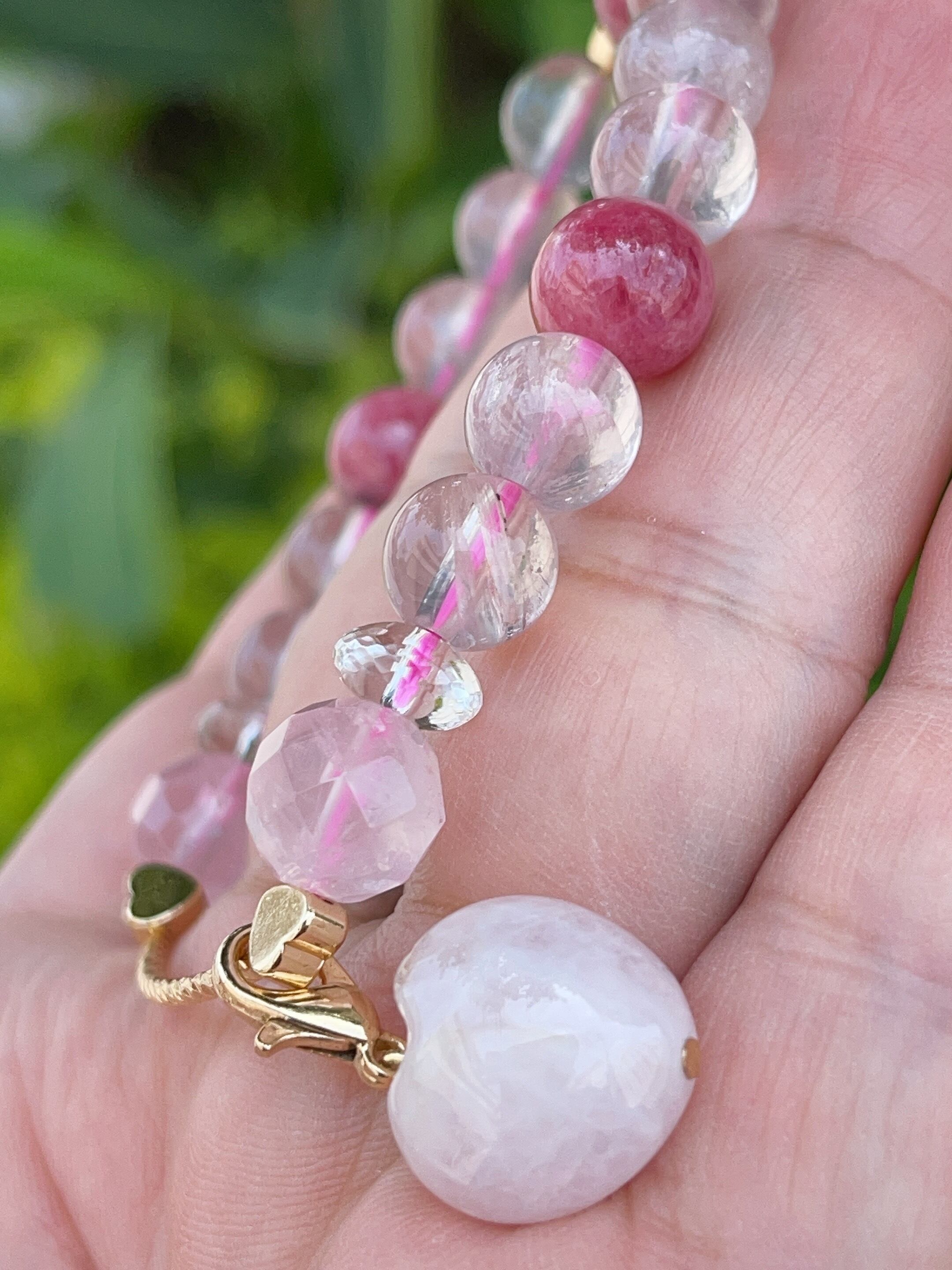 友愛・ 無償の愛・平和の象徴✨ ☆ロードナイト・ローズクォーツ・水晶☆ブレスレット