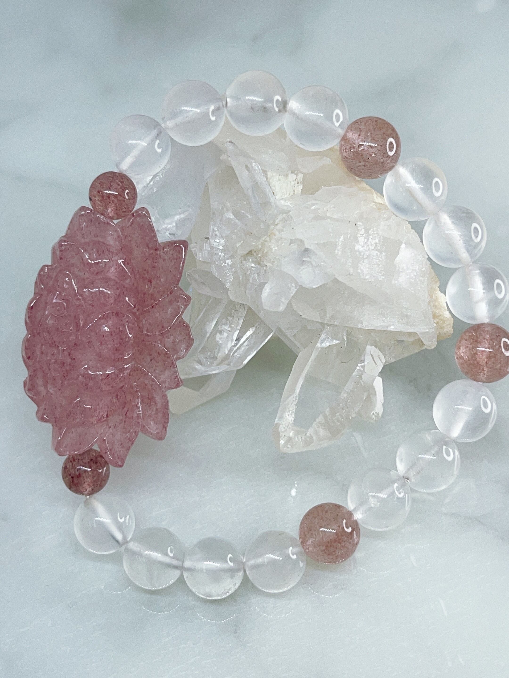 幸福の石・インスピレーションUP✨☆ムーンストーン・蓮ストロベリークォーツ☆ブレスレット