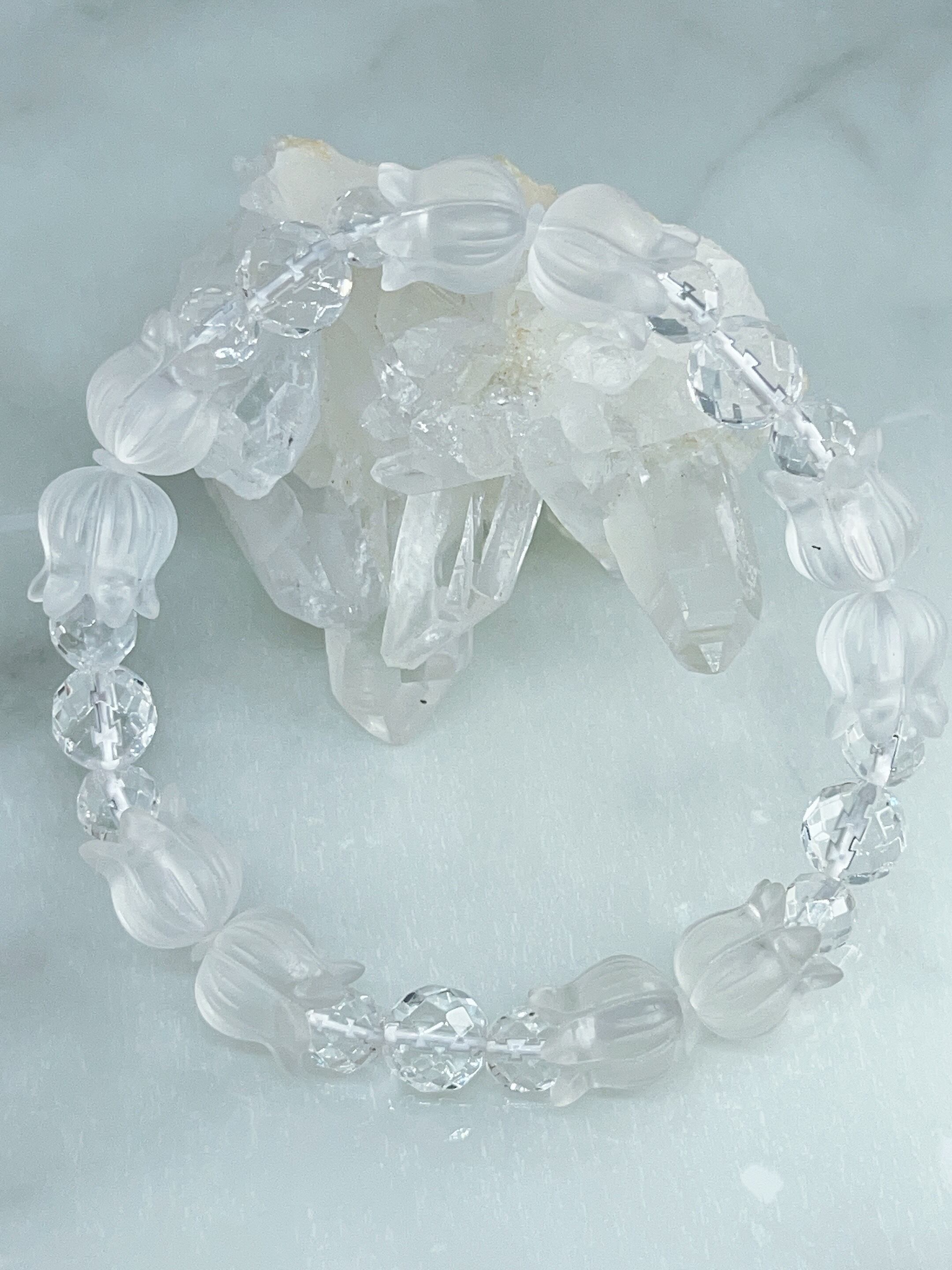 セール❣️浄化・開運UP✨☆水晶・フロスト水晶☆すずらんブレスレット