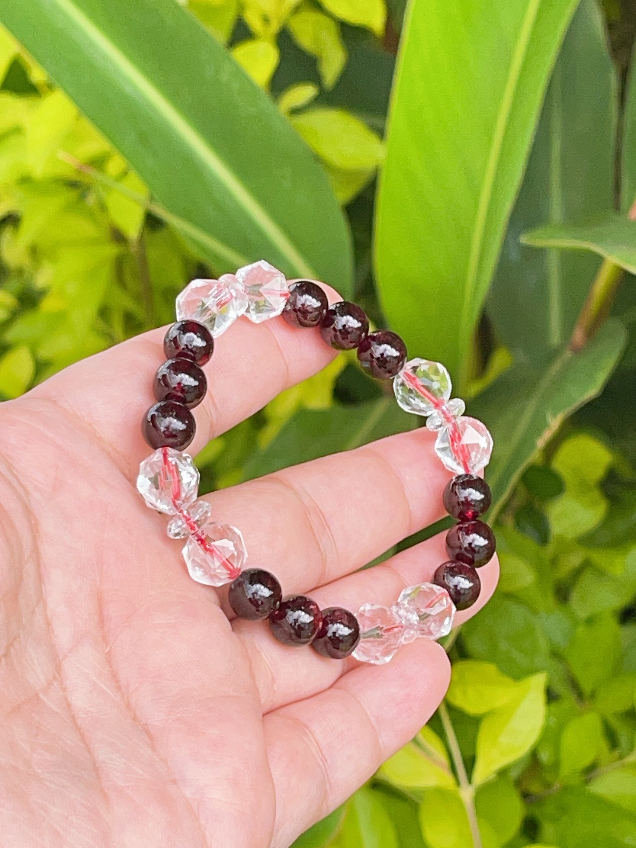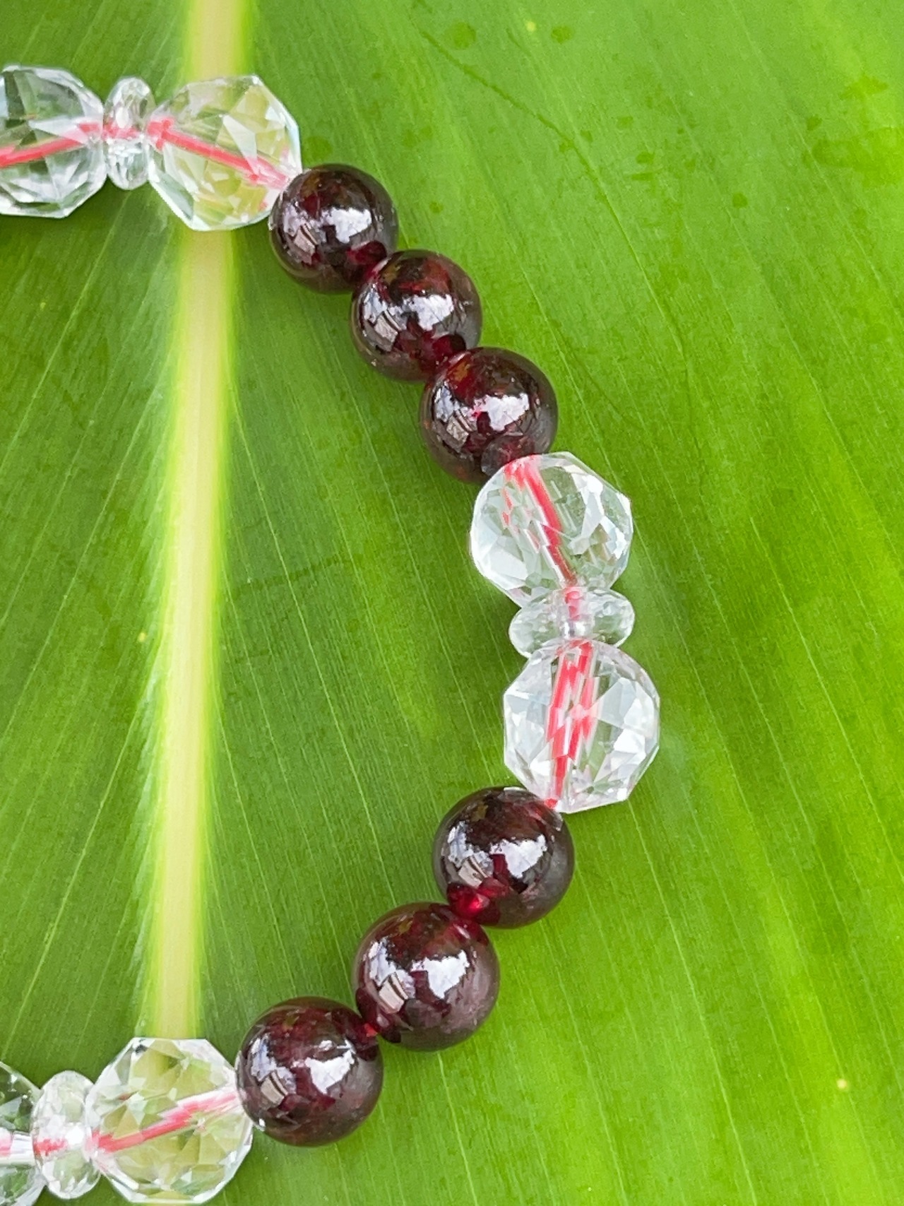 開運・本領発揮・成功へのサポート✨ ☆ガーネット・カット水晶☆ブレスレット