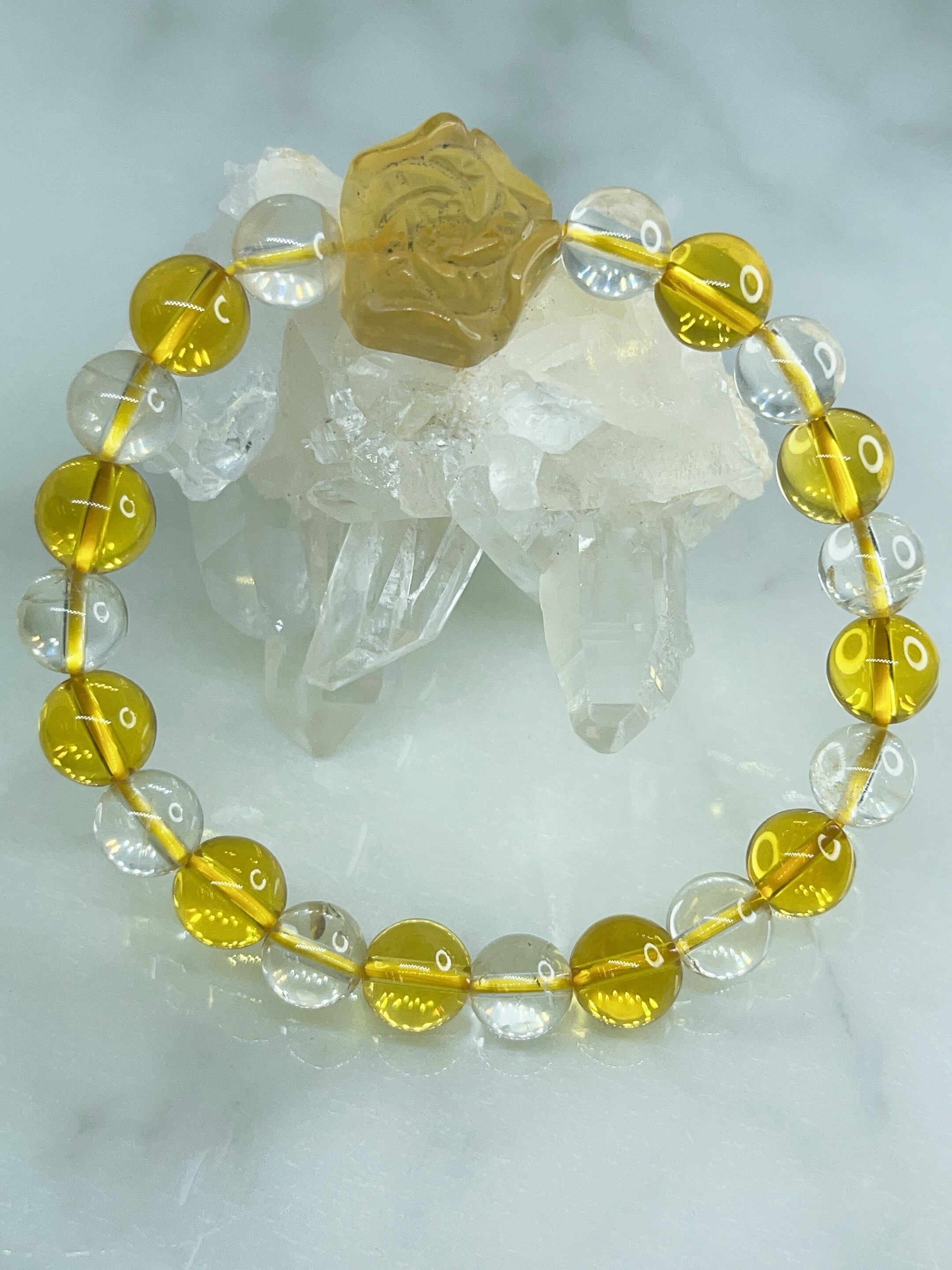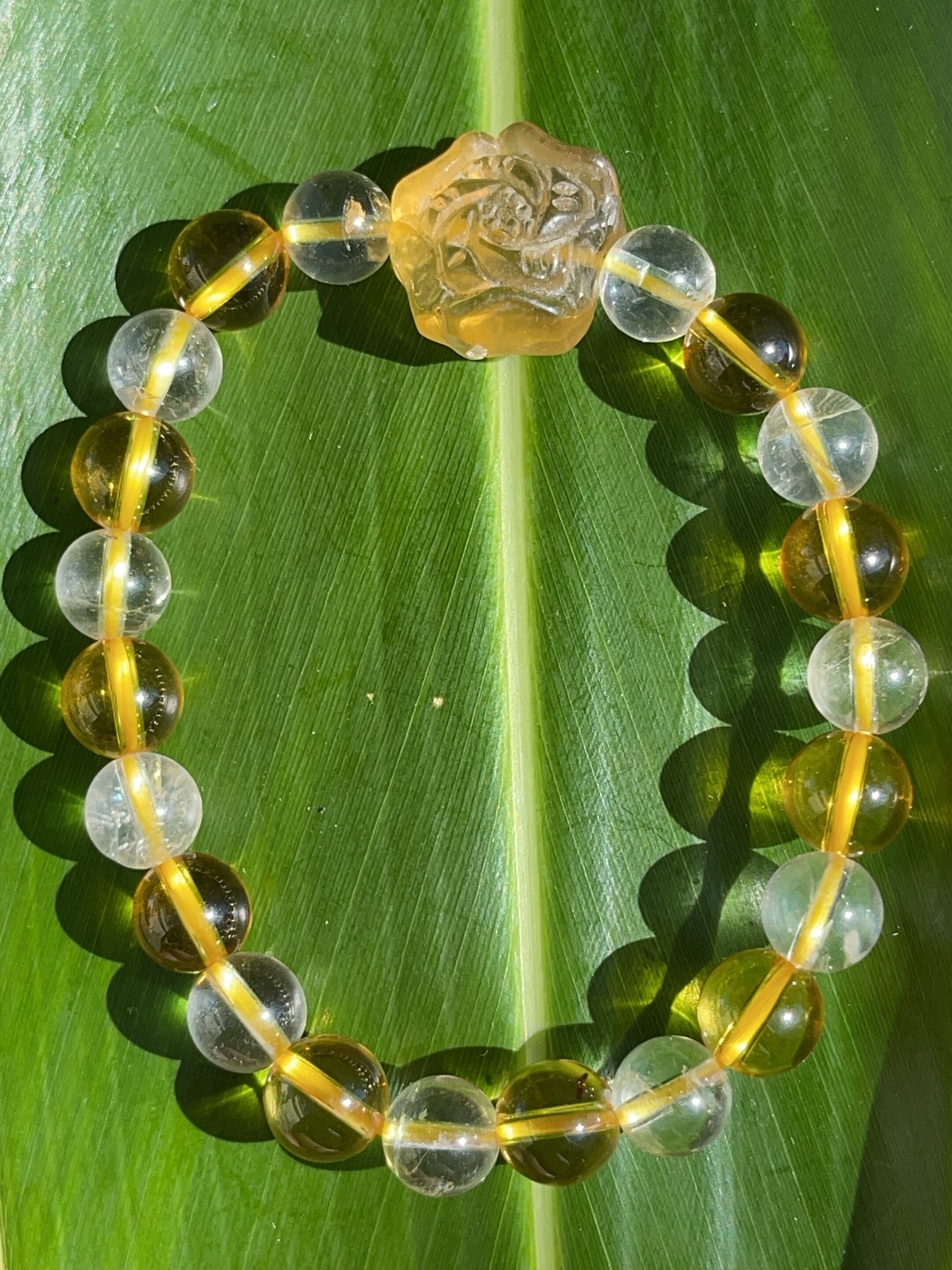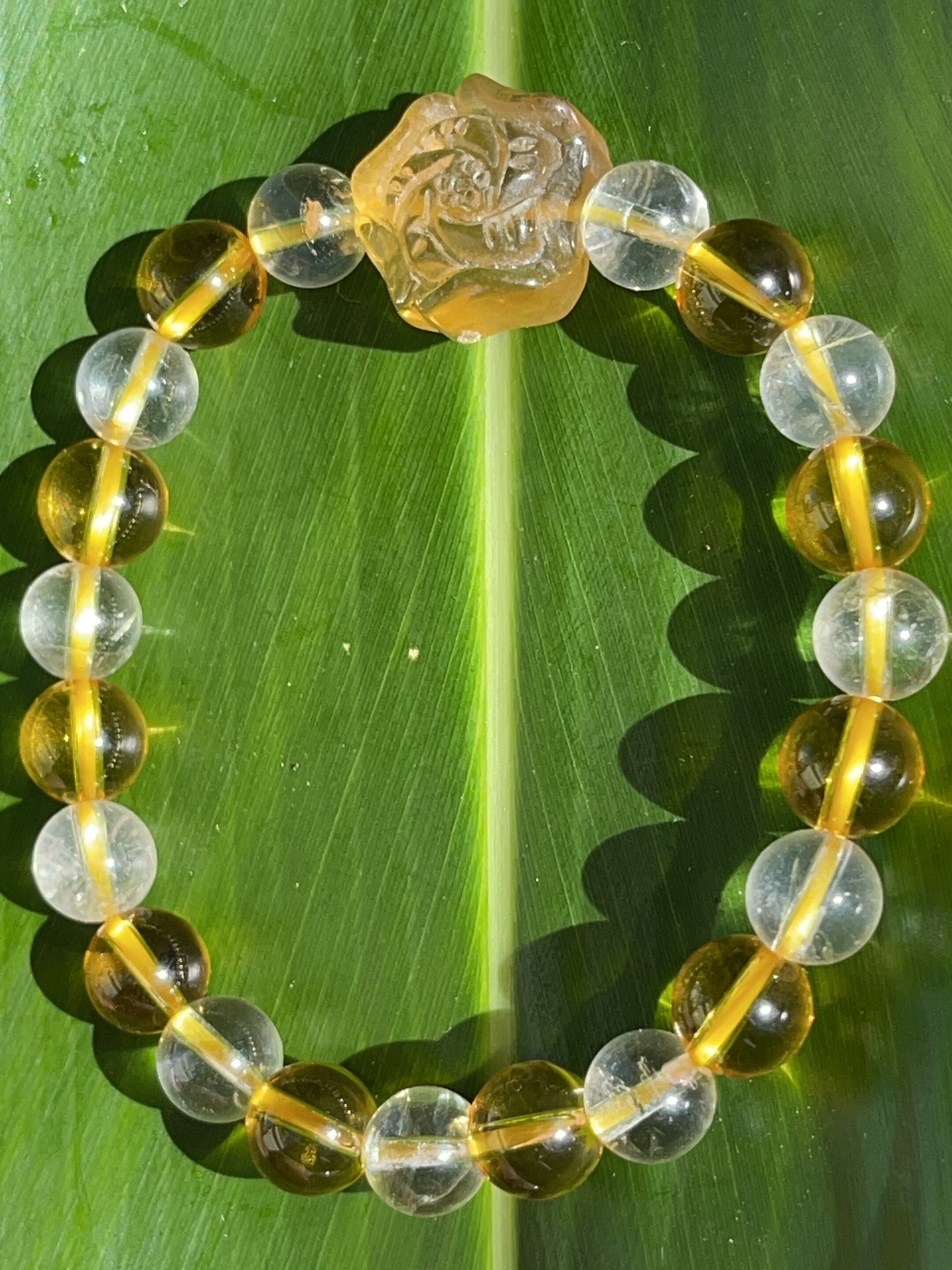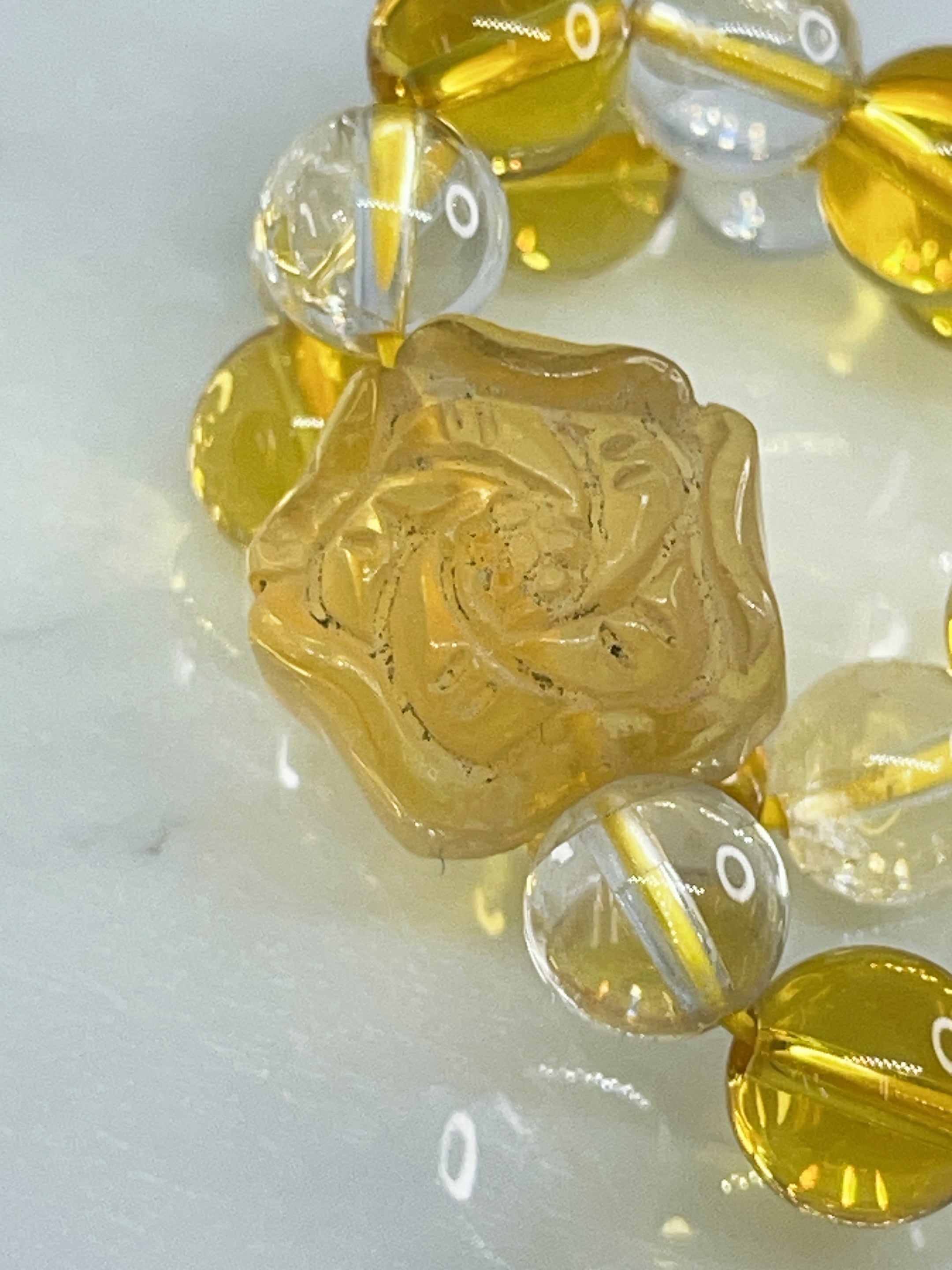 ストレス軽減、集中力UP 、幸運✨☆薔薇イエローフローライト・シトリン・水晶☆ブレスレット