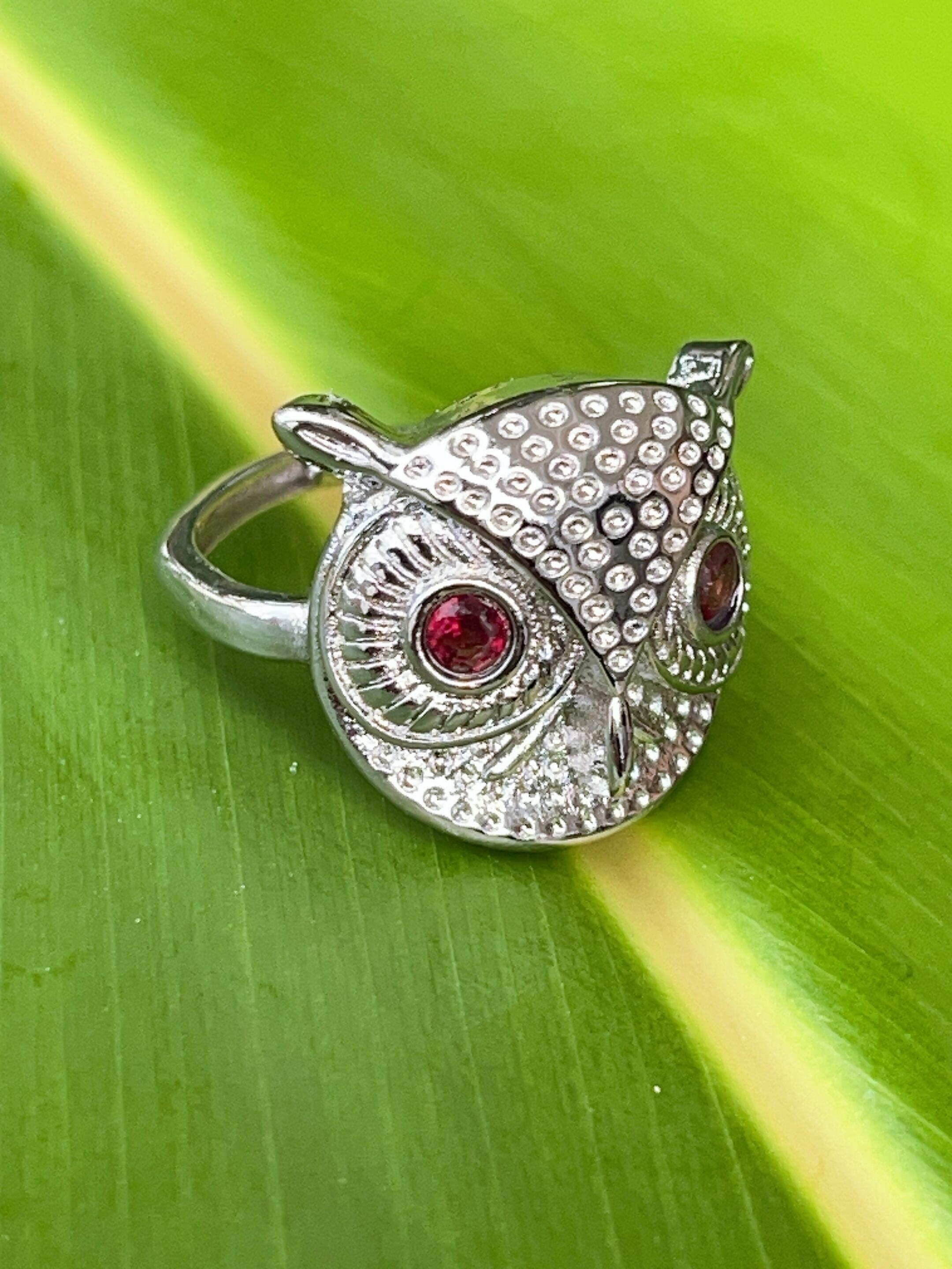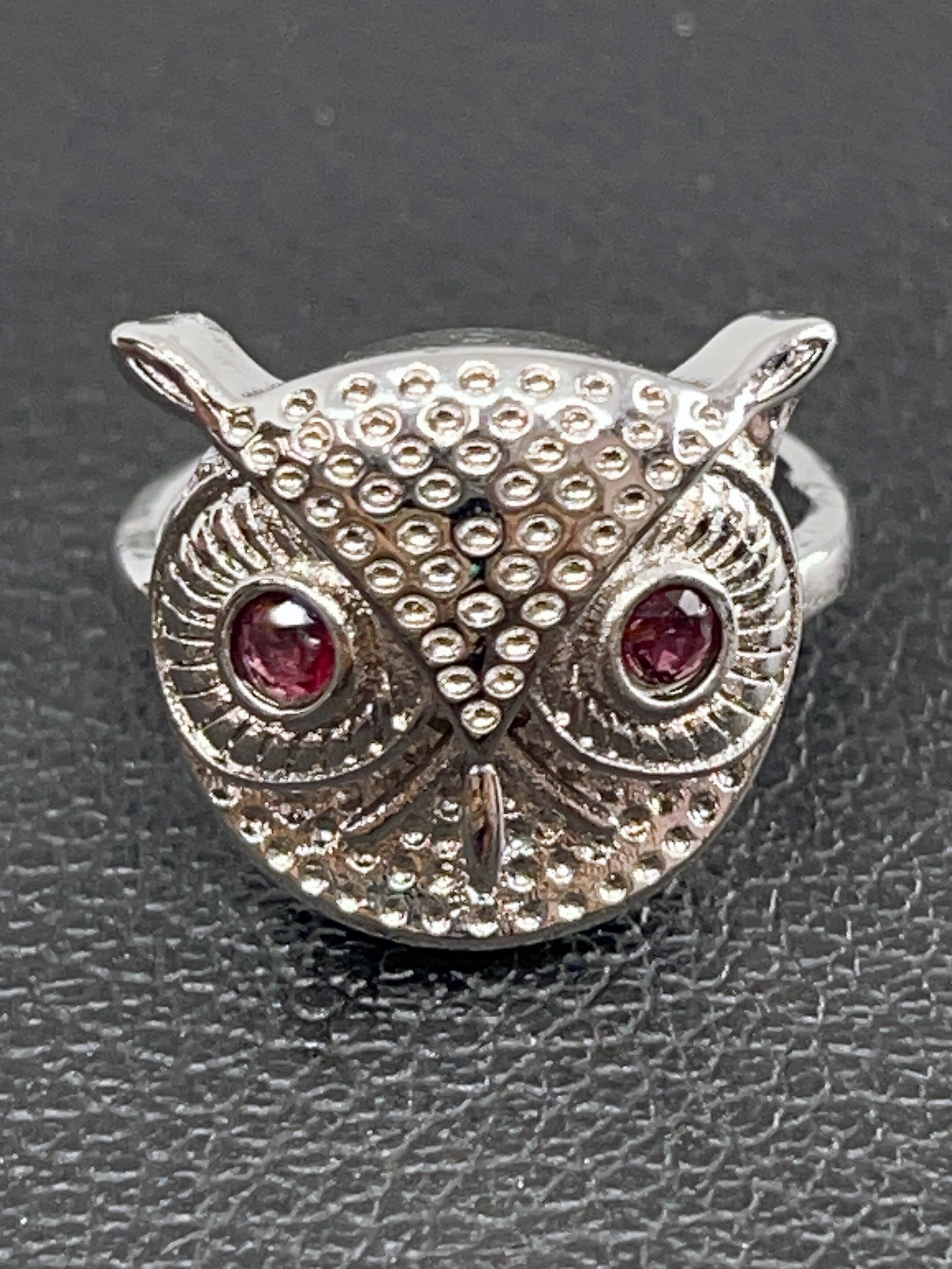 努力を応援❣️やる気UP✨☆ガーネット☆フクロウさんフリーサイズリング