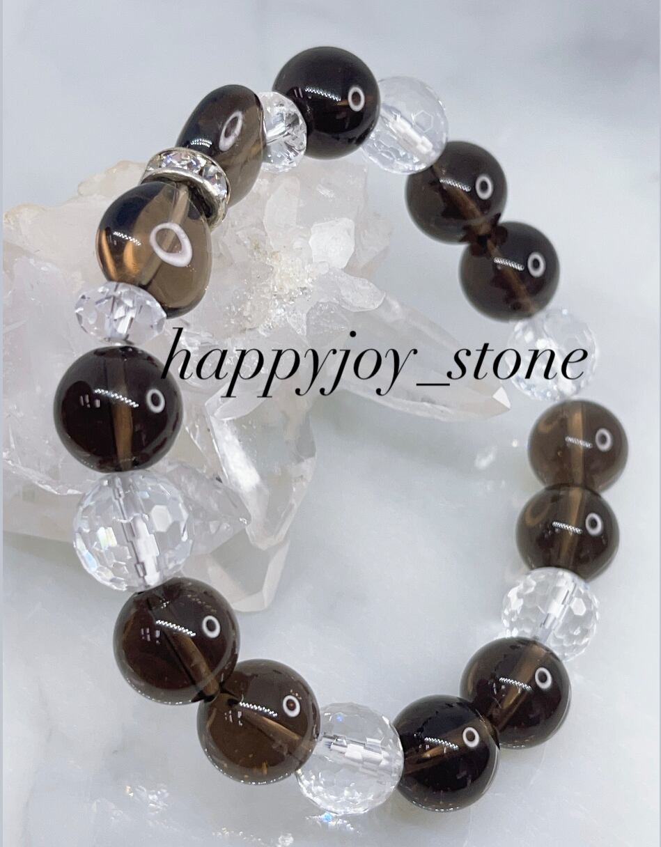 幸運を呼び寄せる・最強守護石✨☆スモーキー・128面カット水晶☆リボンブレスレット