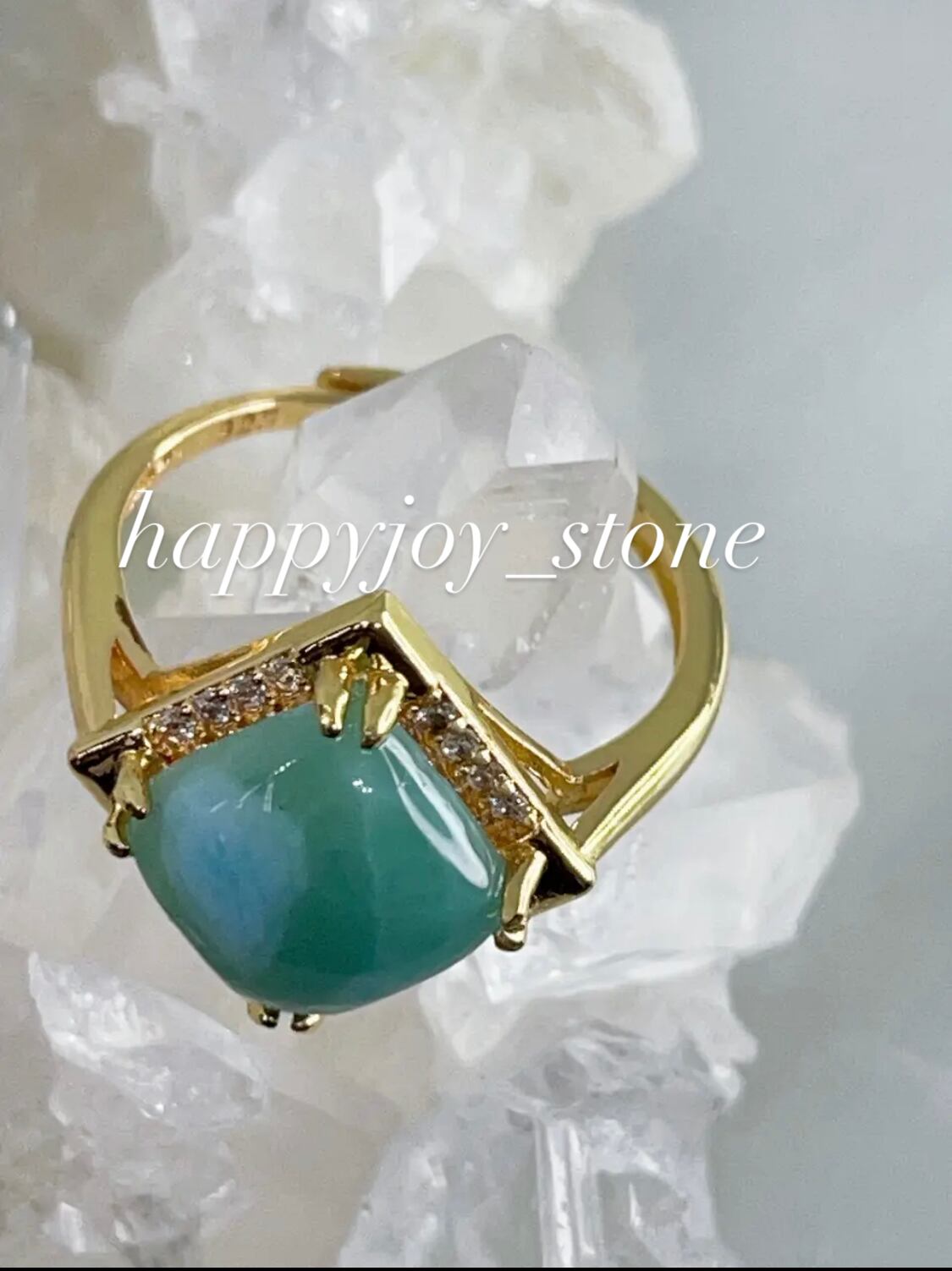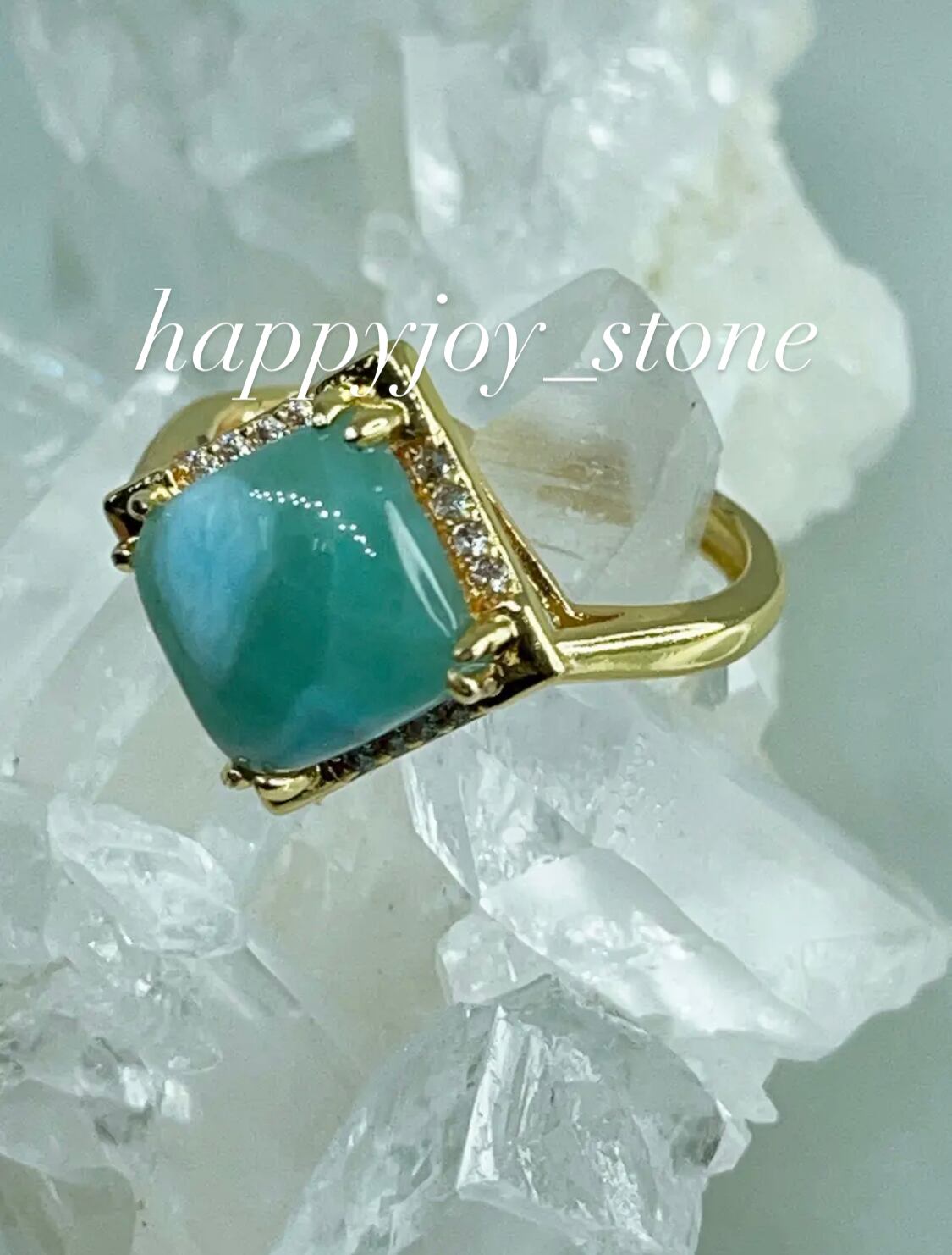 心身の癒し✨☆ラリマー☆ゴールドカラーひし形フリーサイズリング