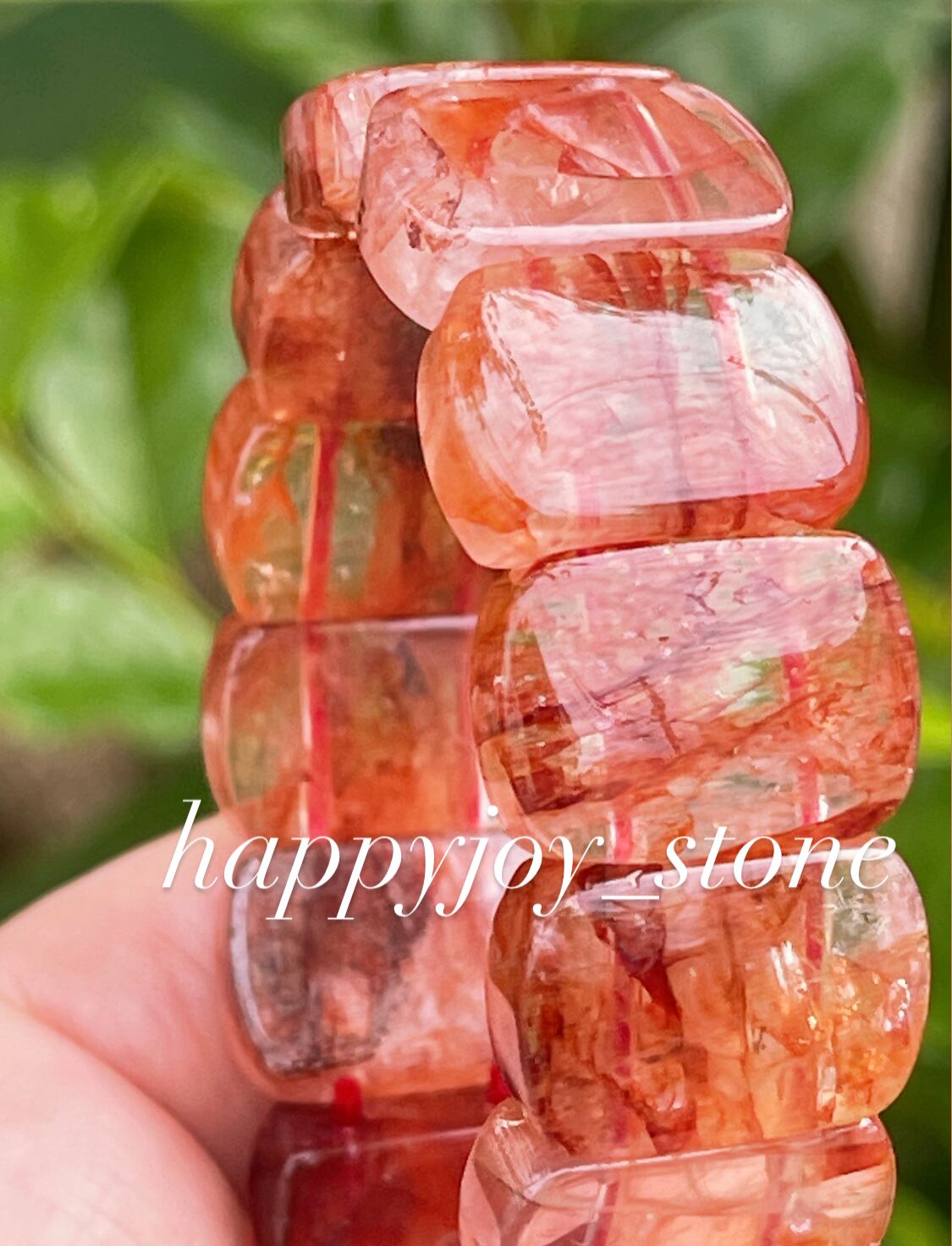 鉄分(ヘマタイトやリモナイト)が水晶に入り込み、輝き方や色味がそれぞれ異なります。発色は赤色や黄色でオーロラの様に波うっているように見えとても幻想的です。色については好みで選ぶと良いです。