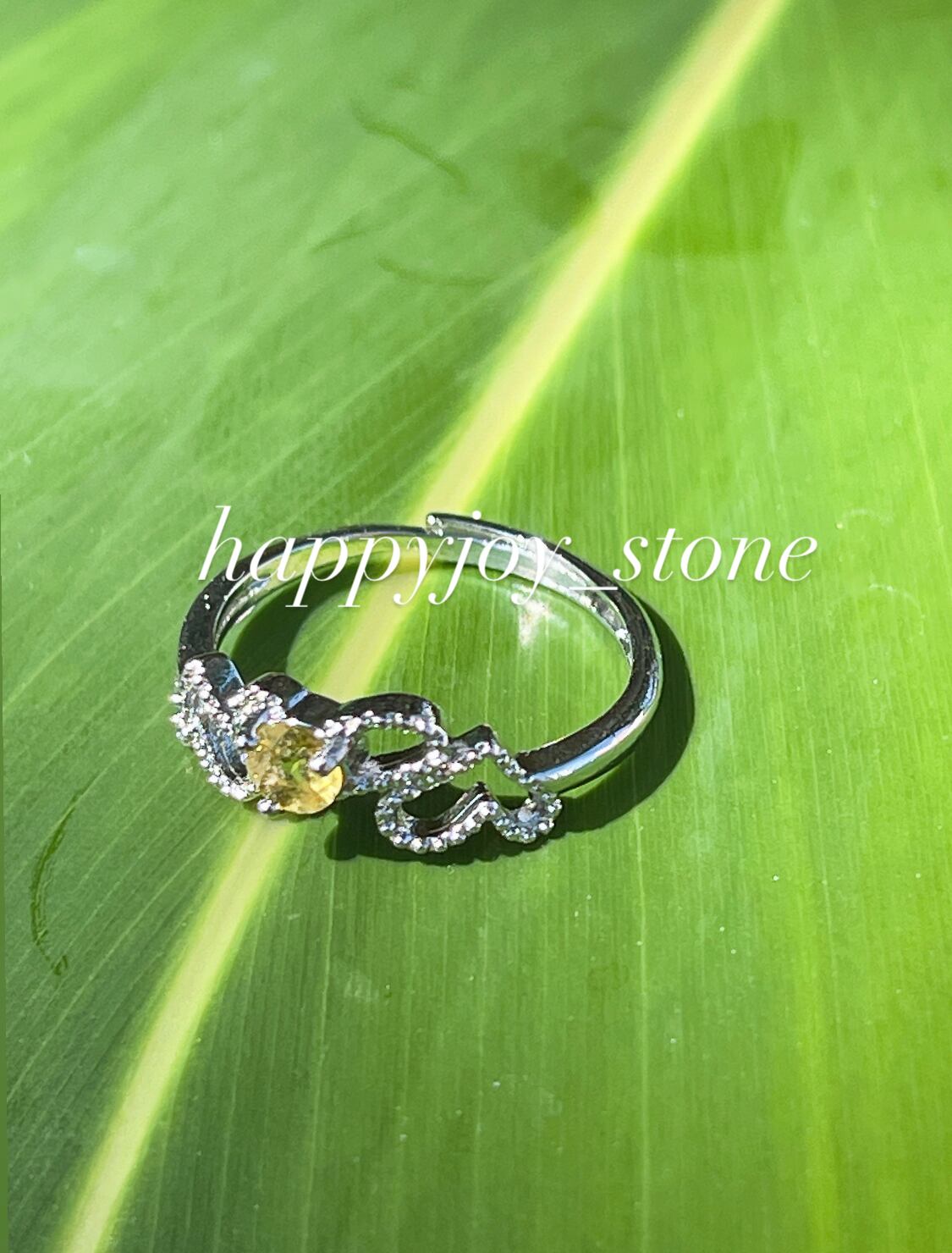 心穏やかにリラックス効果☆ハートイエロートルマリン☆真鍮フリーサイズリング