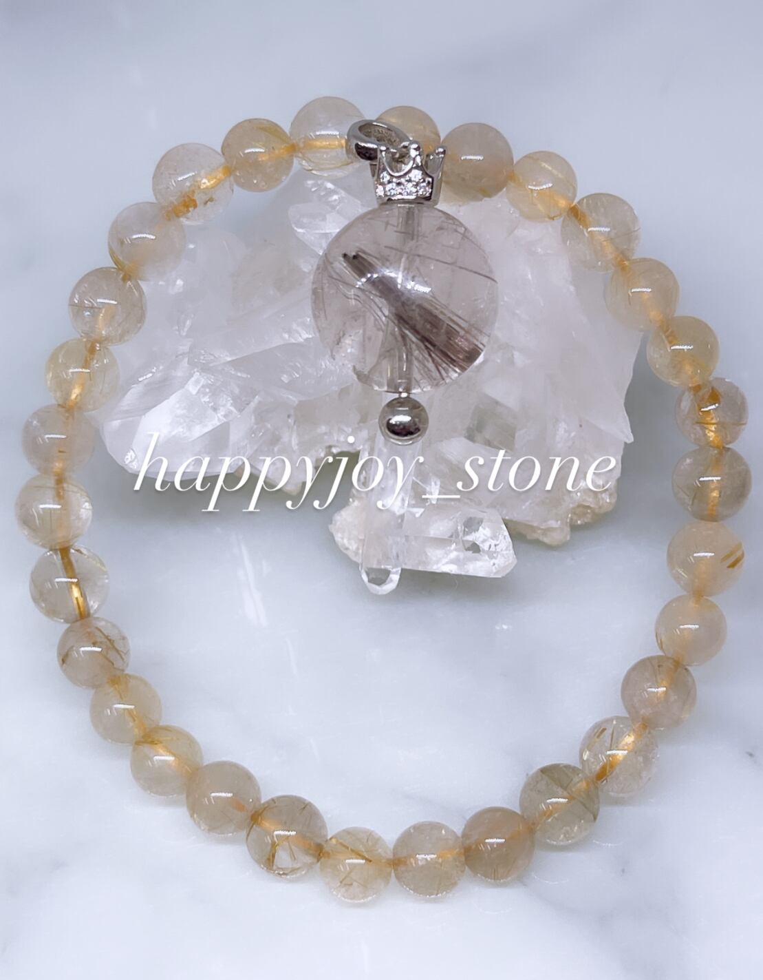 水晶の中にルチル(金紅石)を内包した天然石です。針状、または繊維状に内包され独特の輝きを放つのが特徴で、全体が黄金色になるものは特に人気があります。「金の線が入る」=「金銭が入る」ともいわれており、金運アップにもっとも力を発揮すると信じられています。