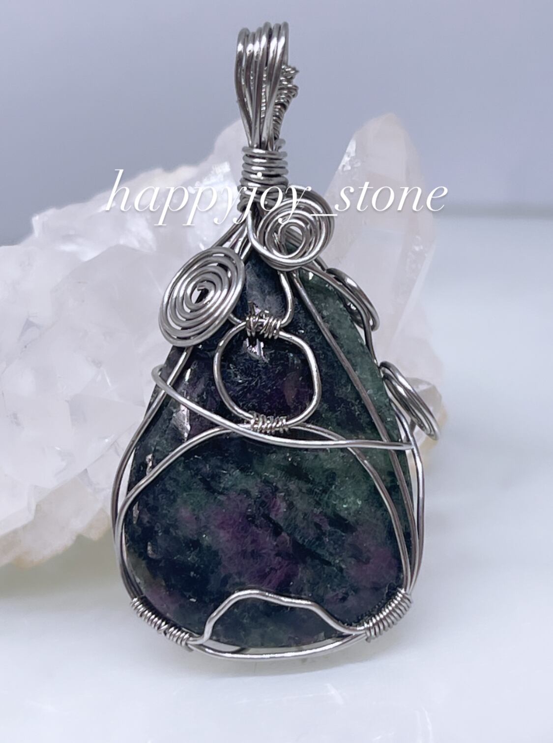 癒し、グラウディング✨☆ルビー(ルビーインゾイサイト)☆ワイヤーアートペンダントトップ