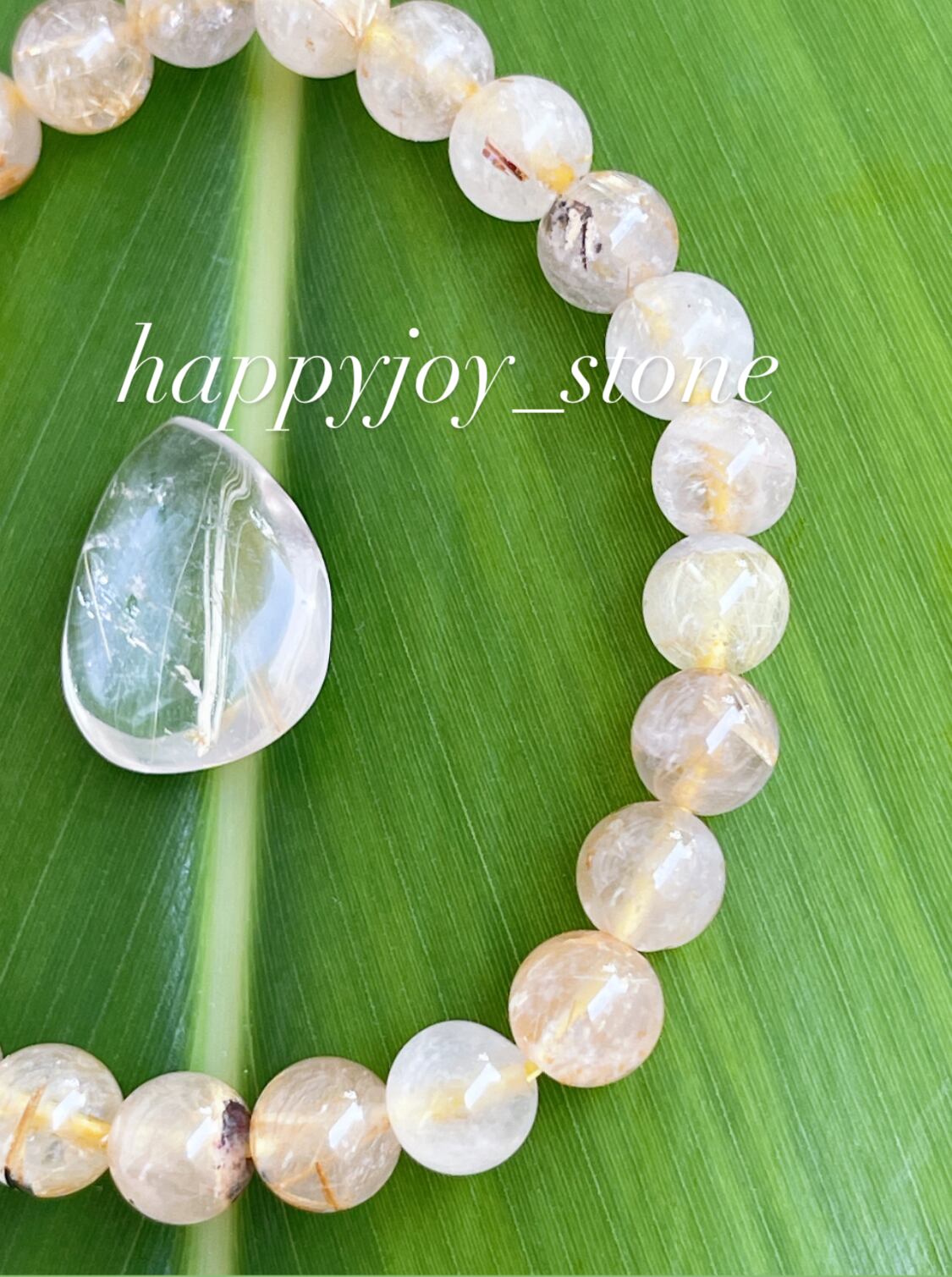 水晶の中にルチル(金紅石)を内包した天然石です。針状、または繊維状に内包され独特の輝きを放つのが特徴で、全体が黄金色になるものは特に人気があります。「金の線が入る」=「金銭が入る」ともいわれており、金運アップにもっとも力を発揮すると信じられています。